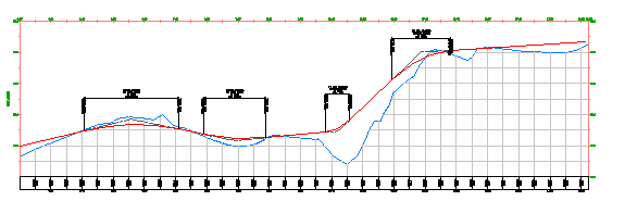 На вид профиля можно наложить профиль другой трассы. Например, на вид профиля для дороги может быть наложен профиль водовыпуска, занимающий этот же коридор. Путем наложения профиля можно проанализировать отметки водовыпуска по отношению к одним и тем же пикетам трассы, используемым для определения поверхностей дороги.