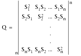 Далее вычисляется ковариационная матрица Q. Ковариационная матрица состоит из коэффициентов неизвестных величин в уравнениях погрешностей и используется для вычисления среднеквадратических отклонений и эллипсов ошибок. Используется следующая матричная формула (ранее используемая для решений матриц А и Р):