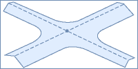 Если задан этот вариант, то гребень главной дороги остается без изменений, а гребень (профиль) второстепенной дороги корректируется в соответствии с кромкой главной дороги и точкой пересечения. Гребень (профиль и края) основной дороги не изменяются. В диалоговом окне Мастера выводится схематичное изображение данного типа перекрестка.
