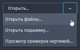 - Чтобы отобразить дополнительные параметры для открытия подшивок или демонстрационных чертежей, нажмите стрелку вниз.