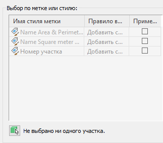 Чтобы добавить все метки определенного имени стиля метки в таблицу, сделайте отметку в позиции "Применить" рядом с именем стиля метки. Когда вы применяете этот метод, все метки переключаются в режим обозначений, и дочерние стили не создаются.