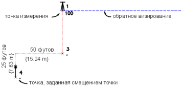 Точка 4 размещается на расстоянии смещения 15,240 и на расстоянии 7,620 впереди от точки 3.