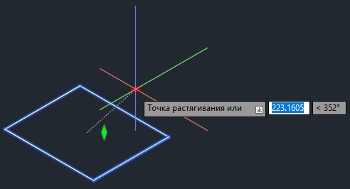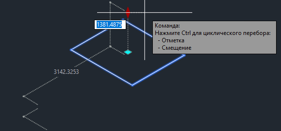 Ручка в виде зеленого ромба служит для корректировки отметки или вертикального смещения подземного отстойника. Перемещение этой ручки фиксируется по оси Z.