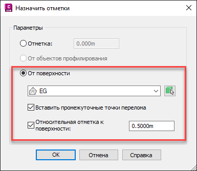 В диалоговом окне Назначить отметки выберите параметр «От поверхности».