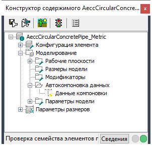 После завершения формирования модели элемента необходимо определить точку размещения этого элемента и убедиться, что он будет вставлен в чертеж правильно. Имеющийся в окне просмотра элементов параметр "Автокомпоновка данных" предоставляет возможность определения точек размещения. При активизации этого параметра в окне просмотра элементов становится доступна папка "Автокомпоновка данных", содержащая команды добавления точек размещения.