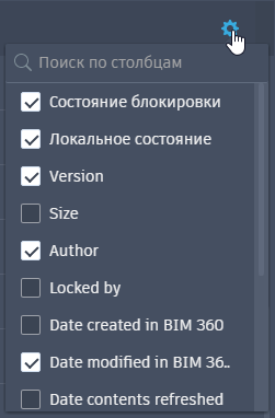 - Открытие списка для выбора столбцов, которые будут отображаться в папке. Столбцы, доступные для выбора, описаны в следующих разделах.