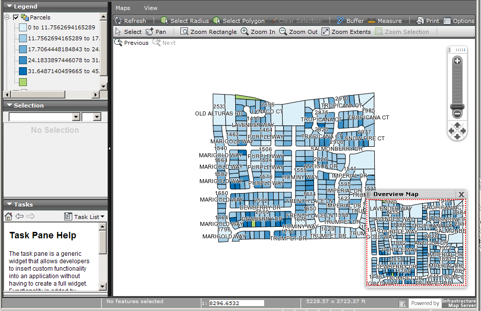 Можно использовать всплывающие меню для отображения информации, если навести курсор на отдельную область. В Autodesk Infrastructure Studio можно создавать всплывающие подсказки, отображающие значения атрибутов на веб-странице Infrastructure Map Server при наведении курсора на участок. Для получения дополнительной информации см. справку Autodesk Infrastructure Studio.
