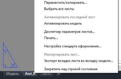 Правой кнопкой щелкните вкладку листа для альбома карт и выберите "Диспетчер параметров листов".