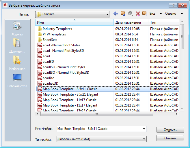 В инструментарий AutoCAD Map 3D автоматически откроется папка Template.