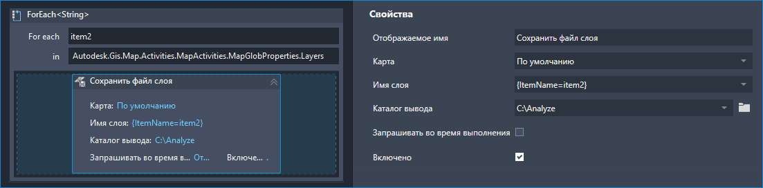 Так как это действие применяется ко всей карте, его не требуется повторять. Поэтому оно добавляется после действия «Повторить добавление слоев».