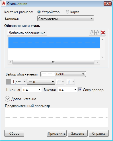 - В области "Выбор символа" укажите образец штриховки для линий.