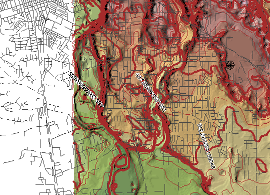 На карту, содержащую 3D-поверхность, можно добавить векторный слой. При отображении карты в 3D инструментарий AutoCAD Map 3D автоматически накладывает векторное изображение на 3D-поверхность.