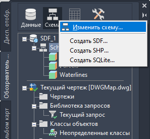 Схемой называется набор классов элементов и их свойств. В схеме могут содержаться свойства с зависимостями. Ограничения, которые определяют, какие объекты можно добавлять в определенный класс элементов. Например, чтобы попасть в класс элементов "Дороги", объект должен быть линией. Свойства аналогично атрибутам являются характеристиками всех объектов в классе элементов. Например, с помощью свойства класса элементов "Дороги" можно задать количество полос движения или ограничение скорости. Значения могут быть разными, но все элементы класса "Дороги" имеют ограничение скорости и определенное число полос.