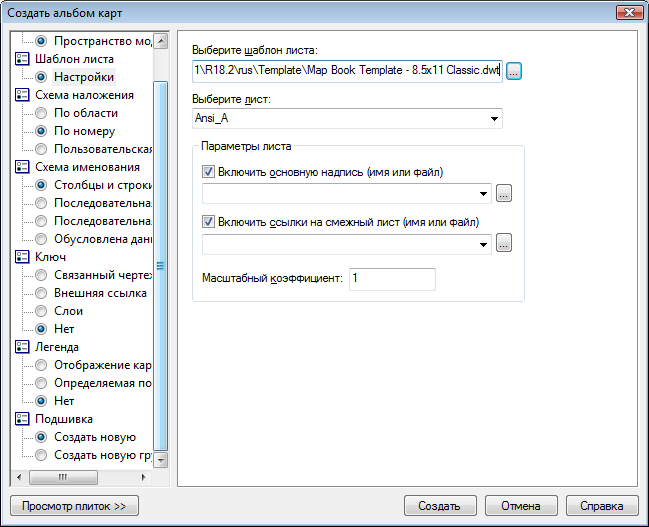 Прим.: Если не задать масштабный коэффициент, альбом карт будет содержать много фрагментов. Обязательно задайте значение 5 000.