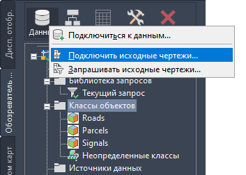 - На вкладке «Обозреватель карт» панели задач выберите меню «Данные»