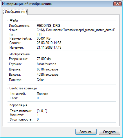 Просмотр информации о растровом изображении