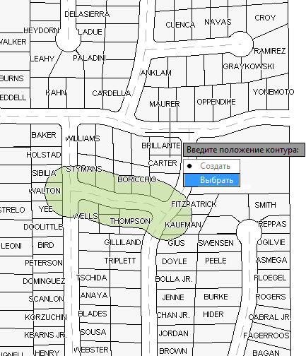 Используйте буферную зону в запросе, чтобы определить, какие земельные участки находятся в зоне строительства, представленной этой буферной зоной. Затем экспортируйте эти земельные участки в файл SDF для дальнейшего использования.