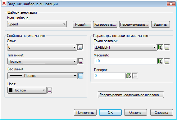 Появится диалоговое окно «Задание шаблона аннотаций».
