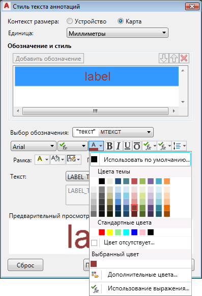 Эти значения будут использоваться по умолчанию для всех добавляемых экземпляров слоя текста. Эти значения можно переопределить при вставке экземпляра текста.