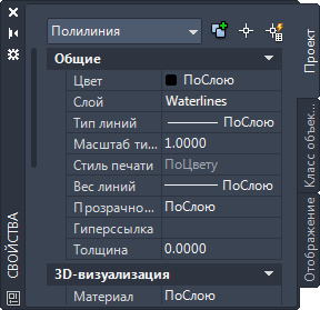 Дороги – это объекты чертежа AutoCAD. Обратите внимание, что в данный момент выбрана полилиния. Для объектов чертежа можно форматировать некоторые свойства с помощью палитры "Свойства".