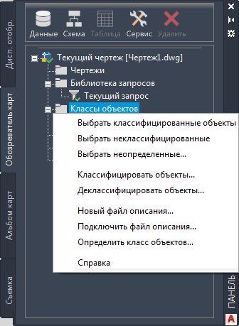 Для создания файла определения классов объектов перейдите на вкладку Обозреватель карт на панели задач. Этот файл можно создать в любой карте.