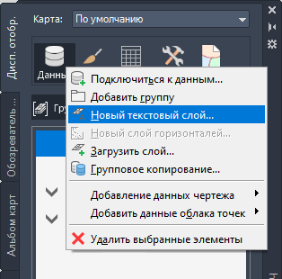 Слой текста создается на вкладке «Диспетчер отображения» почти так же, как слой чертежа.