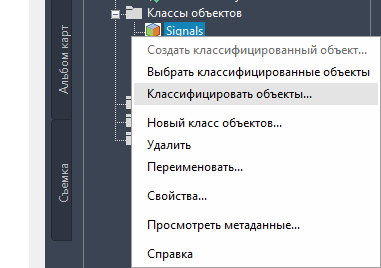 Правой кнопкой щелкните класс объектов "Сигналы" на вкладке "Обозреватель карт" панели задач и выберите команду "Классифицировать объекты".