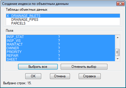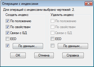 Создание индексов завершено. Работая с чертежами, время от времени повторяйте эту процедуру для обновления или воссоздания индексов.