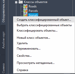 Как только сигналы появятся на карте, можно создать сигнал с помощью класса объектов "Сигналы".