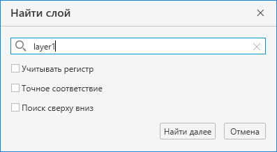- Точное соответствие: для поиска слоя необходимо ввести полное имя слоя.