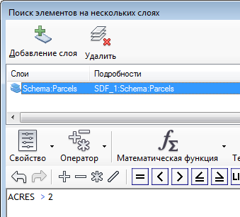 - Чтобы добавить дополнительные слои элементов в данные, просматриваемые выражением, нажмите кнопку Добавить слой и выберите добавляемый слой. Чтобы удалить слой, выберите его в списке и нажмите кнопку Удалить.