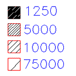 Примеры образцов штриховки при различных уровнях масштабирования на карте, распечатанной с масштабом 1:10000