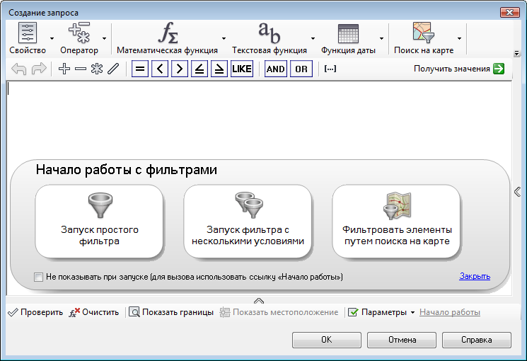 Данные можно фильтровать и выбирать на основе значений одного или нескольких свойств. В простом выражении рассчитывается отдельное свойство, однако можно создавать сложные выражения, в которых используется несколько свойств или несколько значений. Например, можно создать выражение, в котором отображаются округа с населением от 50 000 до 100 000 человек. Результатом выполнения выражения фильтра должно быть логическое значение. |