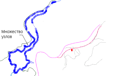 При оцифровке карт могут быть определены стороны или сегменты с подробностями большими, чем необходимо. Операция "Упростить объекты" используется для снижения ненужной сложности горизонталей, рек и береговых линий. Упрощение объектов, которое также называют генерализацией, снижает количество точек на сложной линии.