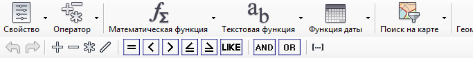 Операции могут сочетаться в выражении различными способами. Например, можно рассчитать область всех участков, а затем найти элементы, у которых свойство StreetName имеет значение "Вязовая" и площадь которых превышает 6 000 квадратных метров.
