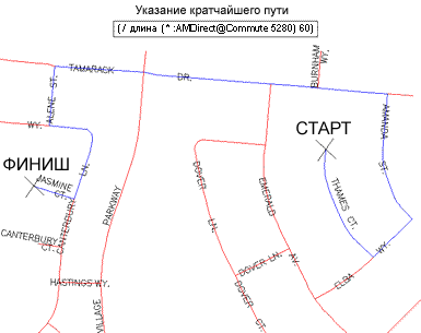 В результате анализ отражает кратчайший маршрут в терминах времени, а не расстояния, при следовании из первой указанной точки ко второй.