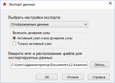 В экспорт добавляется выбранный узел и все его дочерние узлы.