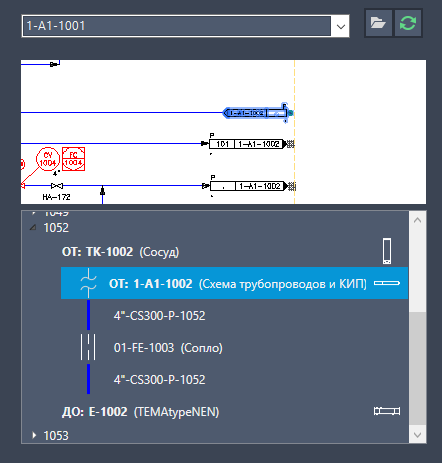 - Предварительный просмотр выбранного чертежа P&ID из раскрывающегося списка.