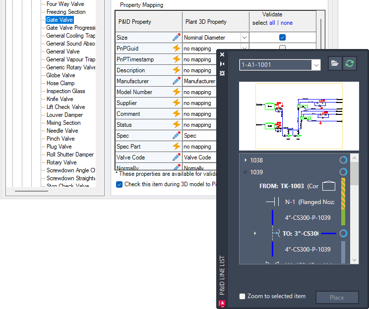Из списка линий можно выбрать любой доступный объект P&ID и разместить соответствующий ему эквивалент Plant 3D в 3D-модели. Значения свойств объекта P&ID будут в точности скопированы в 3D-модель.
