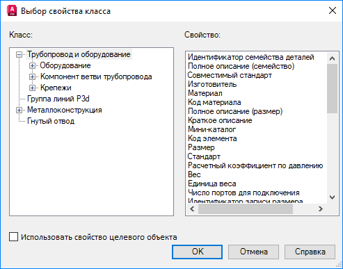 - Открытие диалогового окна «Выбор свойства класса», в котором можно выбрать свойства для дополнительных столбцов в таблице.