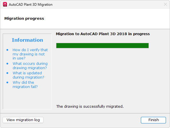 При попытке добавления чертежа, созданного в более ранней версии, в проект, созданный с помощью текущей версии, открывается Мастер переноса чертежа. Будет перенесен только чертеж, который добавляется в проект. При переносе можно создать резервную копию на случай, если в дальнейшем потребуется отредактировать чертеж в более ранней версии. Если отменить перенос чертежа, он вернется в исходное состояние.
