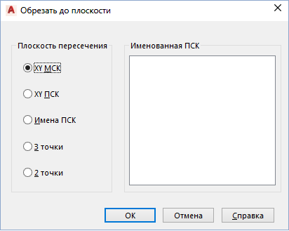 Указывает, что в качестве секущей плоскости используется плоскость XY мировой системы координат.