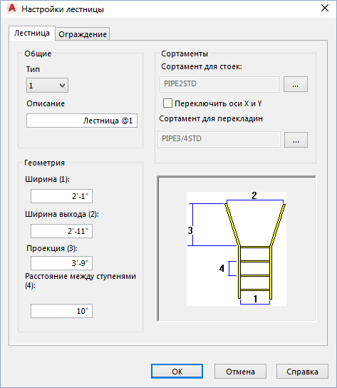 Позволяет задать параметры по умолчанию для создания лестниц.