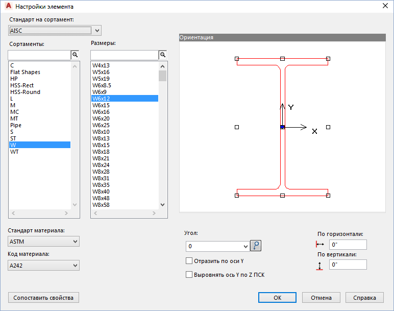 Используется для ориентации элемента вдоль оси Y с осью Z в ПСК.