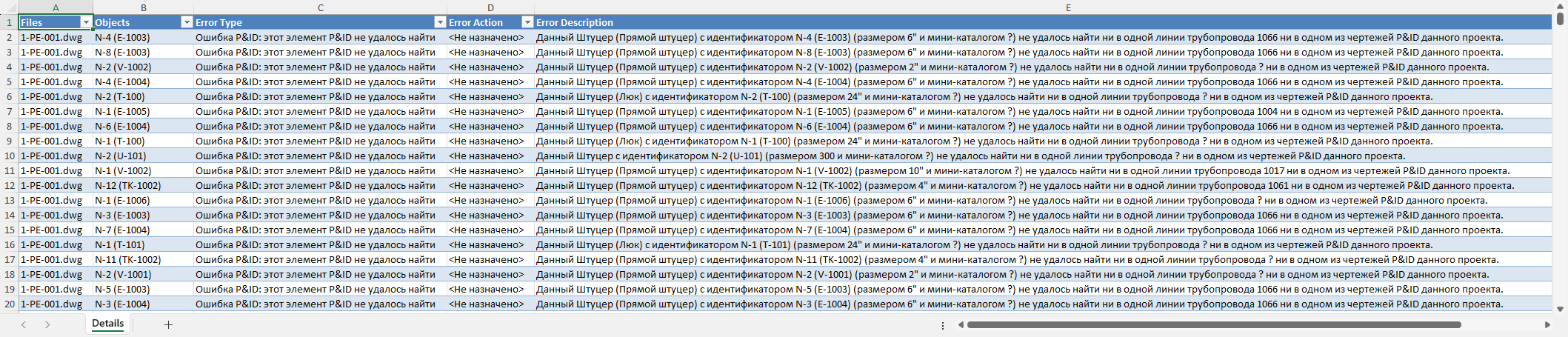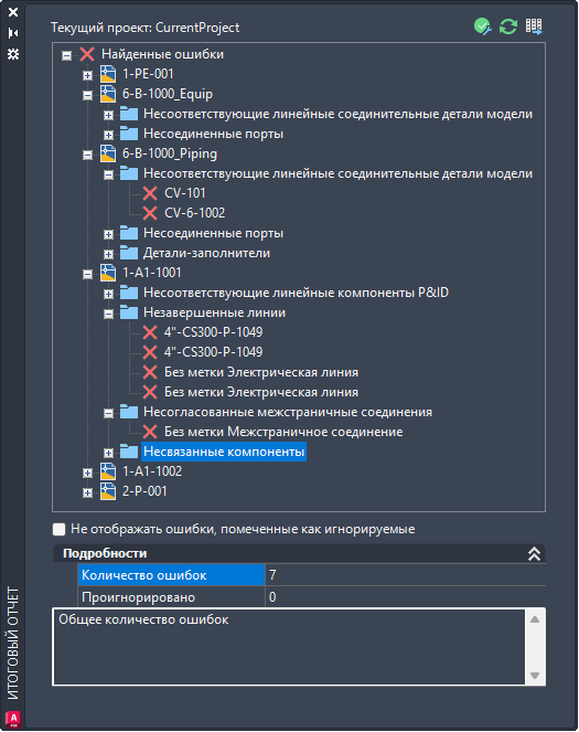В отчете о проверке приведены ошибки, обнаруженные в чертежах и моделях. Изучив и устранив ошибки, вы можете повторно проверить проект, чтобы убедиться, что проблем не осталось.