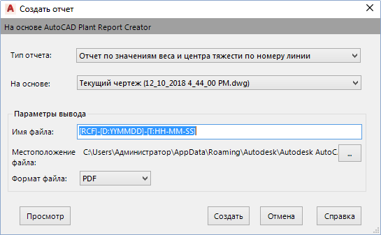 Создание отчета по значениям веса или центра тяжести на основе 3D-модели.