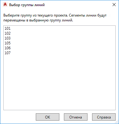 Отображение списка существующих групп линий. По умолчанию идентификатор (значение идентификатора) группы линий соответствует свойству "Номер линии".