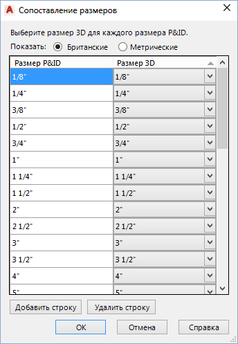 Используется для сопоставления размеров объектов P&ID и Plant 3D.