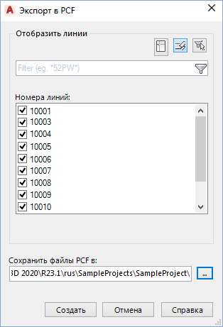 Позволяет выбрать линии, которые необходимо добавить в экспортированный файл компонентов трубопровода (файл PCF).