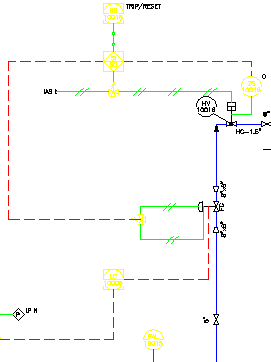Есть два типа групп линий схемы: линии трубопровода и линии КИП. У каждого типа линий собственный набор свойств (например, слой, тип линии, толщина, стиль линии, цвет и данные идентификатора).